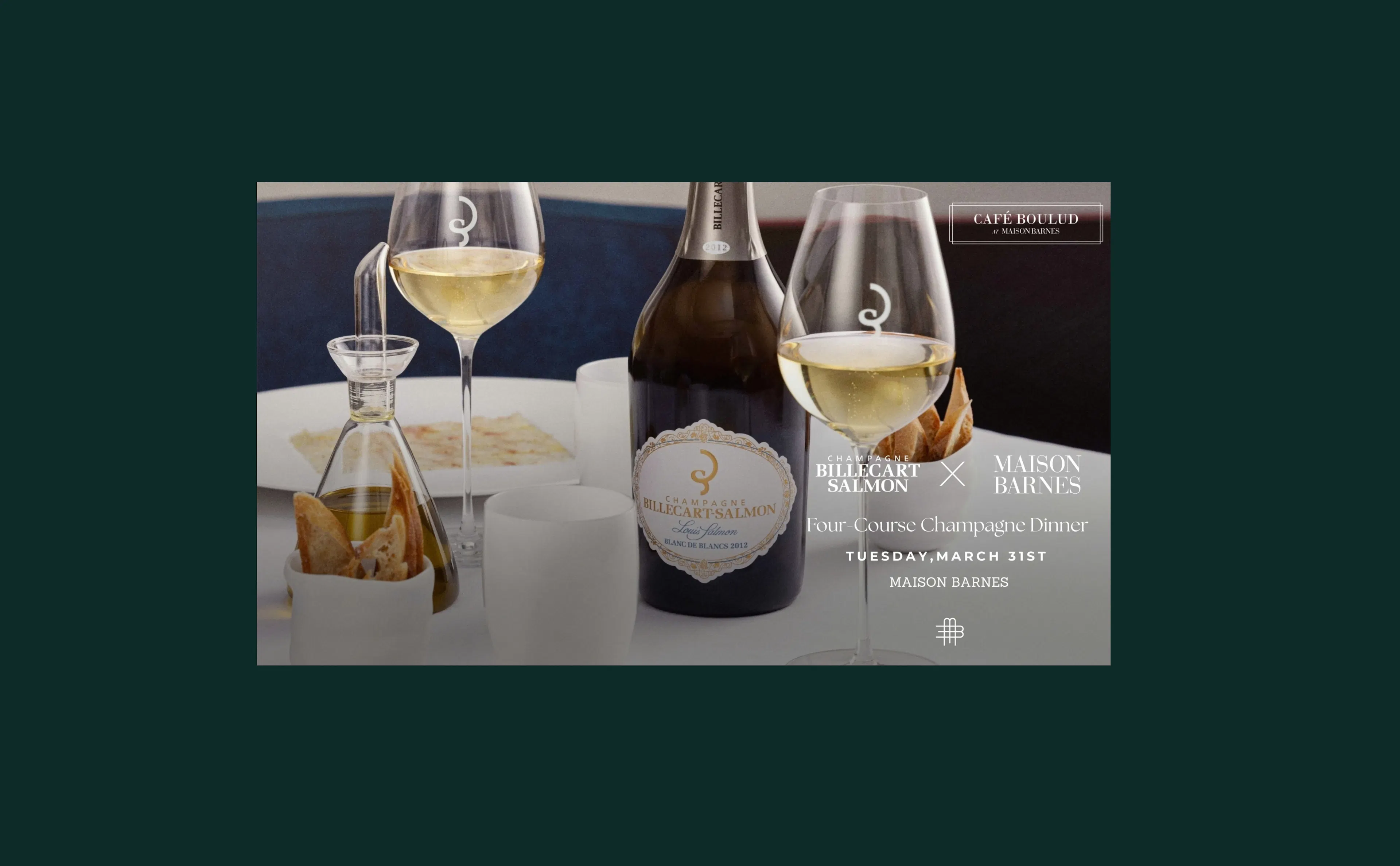This exclusive dinner is hosted by Managing Director Alexandre Bader, who has worked alongside the family for over 30 years to uphold the House's philosophy of excellence. The evening features a bespoke four-course menu by Chef Daniel Boulud and Executive Chef Romain Paumier, paired with seven exceptional cuvées, including a rare vertical of the prestige Cuvée Louis Salmon and Cuvée Elisabeth Salmon.